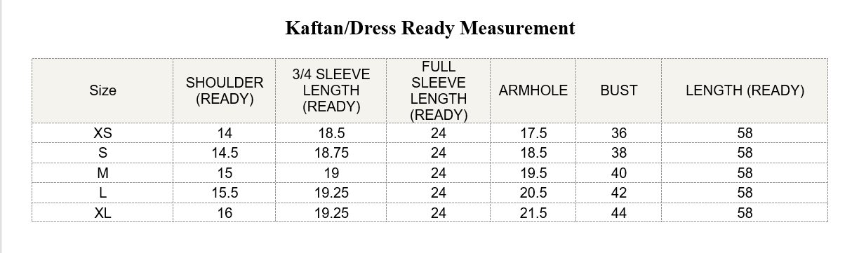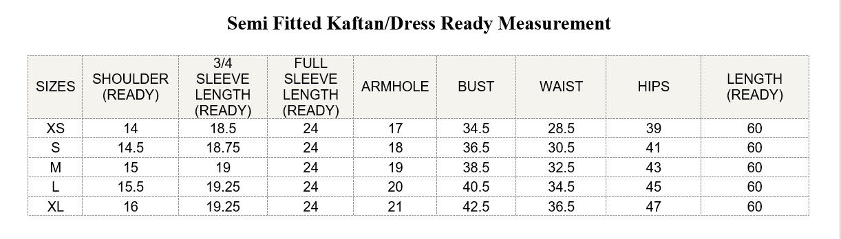 • Style Verification: Always check the kaftan style mentioned in the "Composition & Care" section for accuracy.